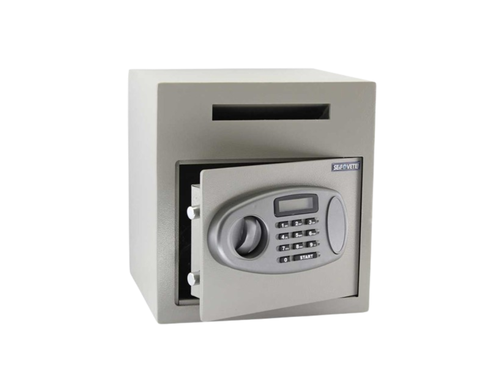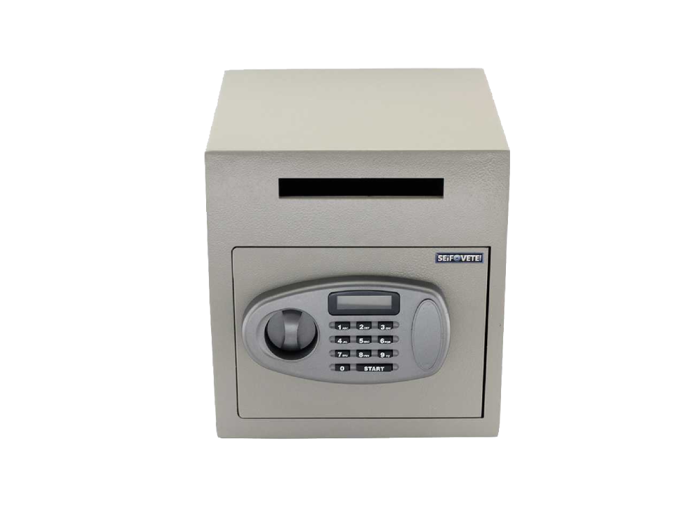 Депозитен сейф, който дава възможност да се поставят пари или други ценности в него, без да се осъществи достъп до съдържанието в касата. Заключването става чрез въвеждане на код от клавиатурата. Бравата работи с код от комбинация на 4-8 цифри. При грешка или забравен код, има възможност за отключване чрез скрита тубуларна ключалка. На вътрешния край на вратата има бутон, който се използва зануляване на код за отключване. След натискането му, задължително трябва да се зададе нов код. Размер на отвора за депозиране - дължина 15см, височина 2см.