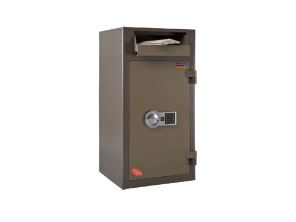Конструкция за депозиране на пари без възможност за обратното им изваждане, тристранно заключване, точки за фиксиране към под и стена. Сейфът се доставя само по заявка, след предварително предплащане.