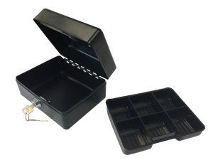 Малка метална кутия за депозиране, пренос и съхранение на пари, вещи, ценности. Пластмасов разделител за монети и дребни вещи, който може да бъде отстранен. Заключва се с ключалка с два ключа, има удобна метална дръжка. Цвят черен мат, устойчив на надраскване. Депозитна кутия 152/118 е идеалното решение. Тя е малка, сигурна и разполага с всичко необходимо, за да съхранявате ценностите си на сигурно място. Разделителят улеснява отделянето на монетите от банкнотите, за да не се смесват. А с двата ключа вече няма да се притеснявате, че ще ги загубите! Освен това тази метална кутия е устойчива на надраскване, така че ще изглежда нова дори след години употреба. Дебелина на стената - 1мм.