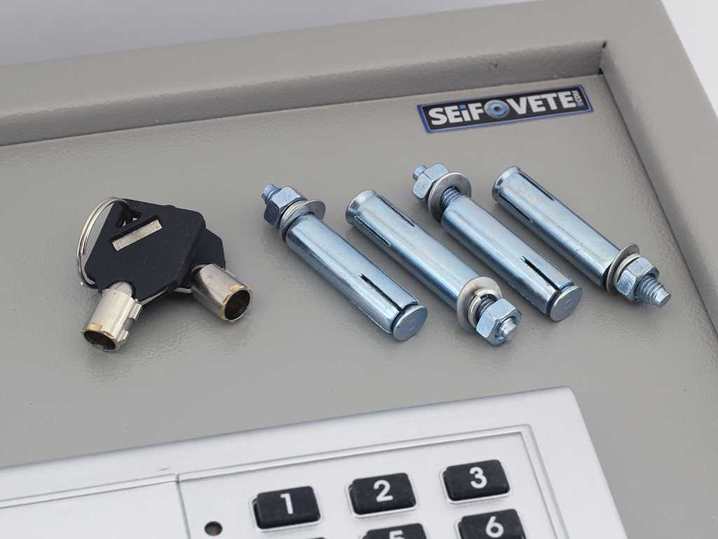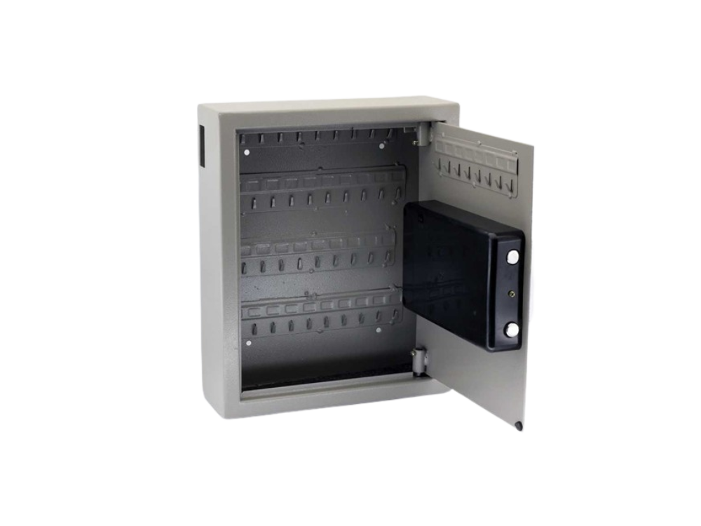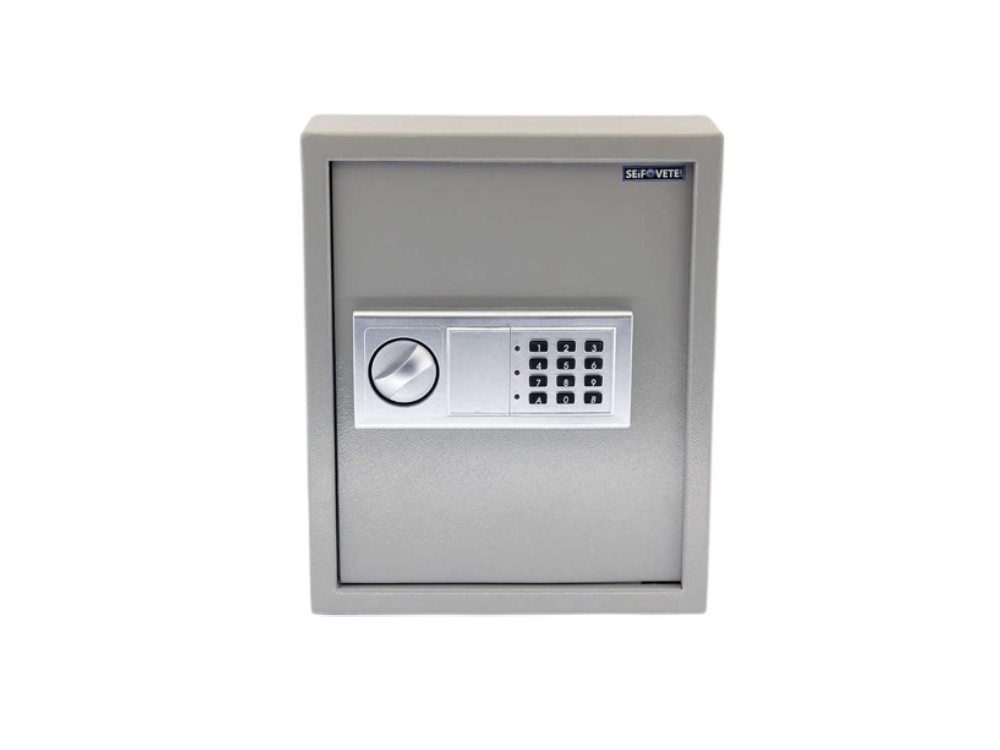 Намирането на точния ключ е лесно - чрез номериране на всеки ключ и всяка позиция за закачането му. За по-висока сигурност има две ключалки - една с електронно заключване /необходими са 4 бр. батерии АА/ и втора за аварийно отваряне с тубуларни ключета, включени в комплекта. Монтира се лесно на стена, чрез отворите на задната си стена. Възможност за съхранение на до 48 ключа. Има допълнителен отвор от лявата страна за прибиране на ключ, без отваряне на предната врата.