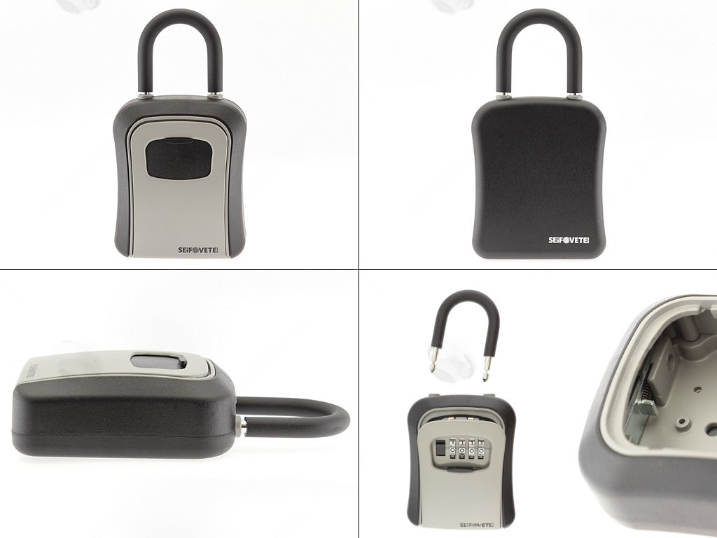 Малка преносима кутия за съхраняване на ключове, с възможност за закачане посредством скоба. Изработена от метал и пластмаса, има защитно капаче срещу прах. Побира ключове с дължина до 10 см.