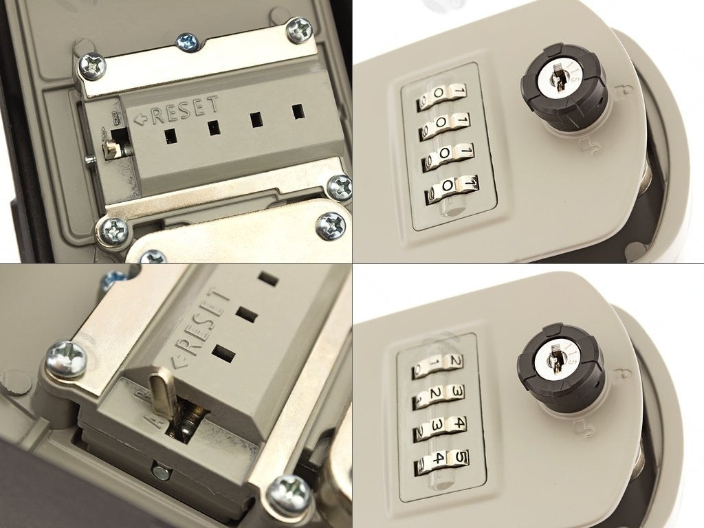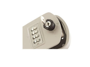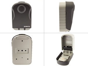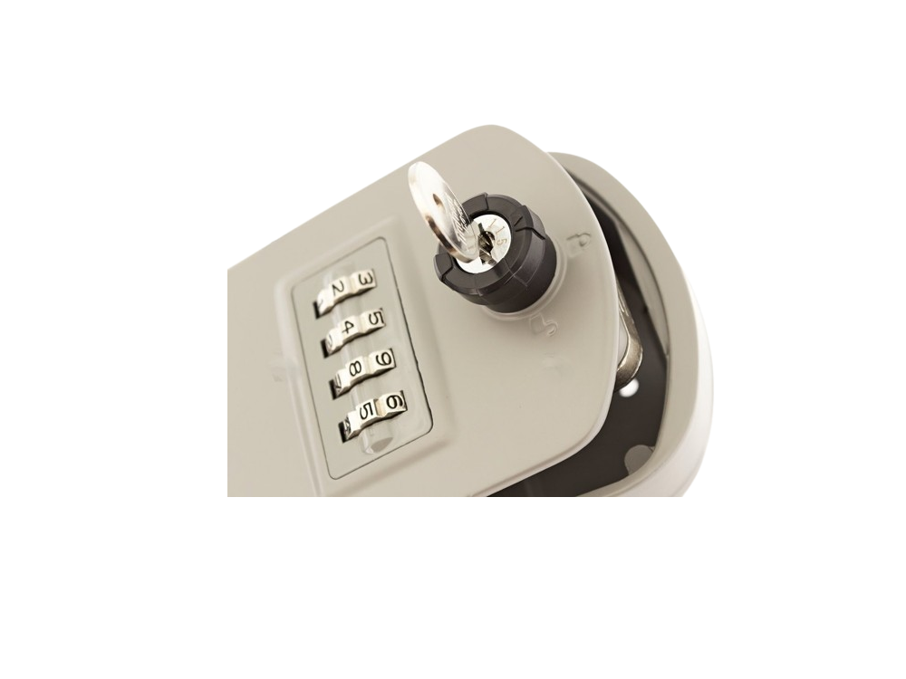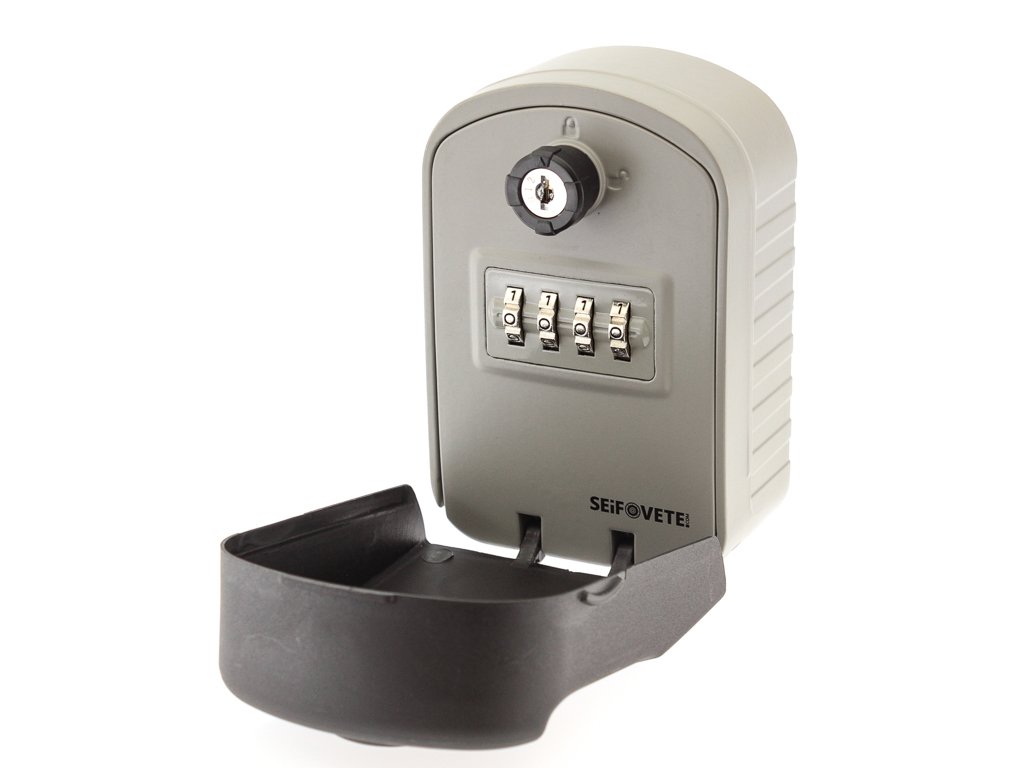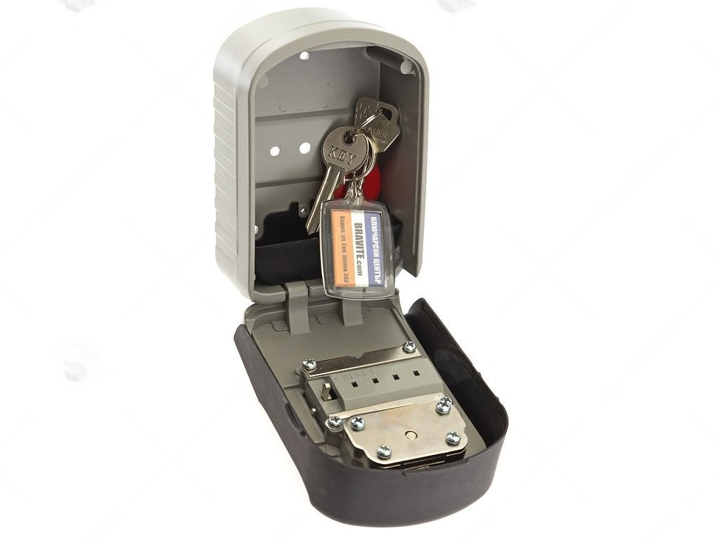 Малка кутия за съхраняване на ключове с код и ключ (при нужда от аварийно отваряне). Удобна за използване при наети помещения и обекти, ползвани от повече от едно лице. Лицето, което знае кода, може да получи ключовете и да ги върне обратно без съдействието на наемодателя. Монтира се до вратата или във входа на сградата.Побира ключове с дължина до 10см. Кодът е 4-цифрен и се задава от ползвателя. Променя се при желание. Има защитно капаче срещу прах. Подсилен корпус и вратичка. Кутията е изработена от метал и пластмаса. В случай на неизвестен код се използва ключа.Размери в см: В/Ш/Д=13/9/6.5 Получавате: кутия с капак ключ 1 брой крепежи ваничка за ключове опаковка инструкция за употреба