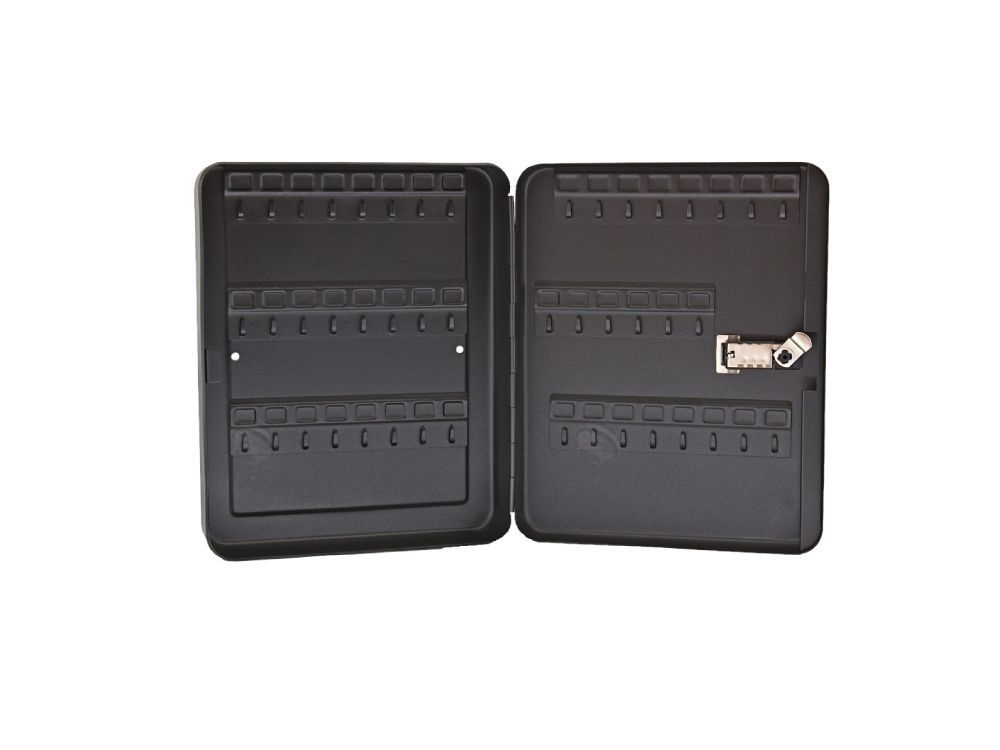 Ключник, с кукички за закачане (46бр). Цветът е черен мат. В комплект с етикети - числа и два дюбела за закрепване към стена.Заключването е чрез 3-цифрен код, който се сменя при необходимост. Изработен е от метал с дебелина на стената 1мм. Тази кутия за ключове е чудесна за всеки, който иска трайно решение за съхранение, без да се притеснява, че ключовете му ще бъдат изгубени или откраднати. С този продукт вече няма да се налага да търсите в купища разхвърляни ключове или да питате някой друг къде ги е сложил последния път. Сега, когато всичко е прилежно организирано на едно място, животът ще стане много по-прост!