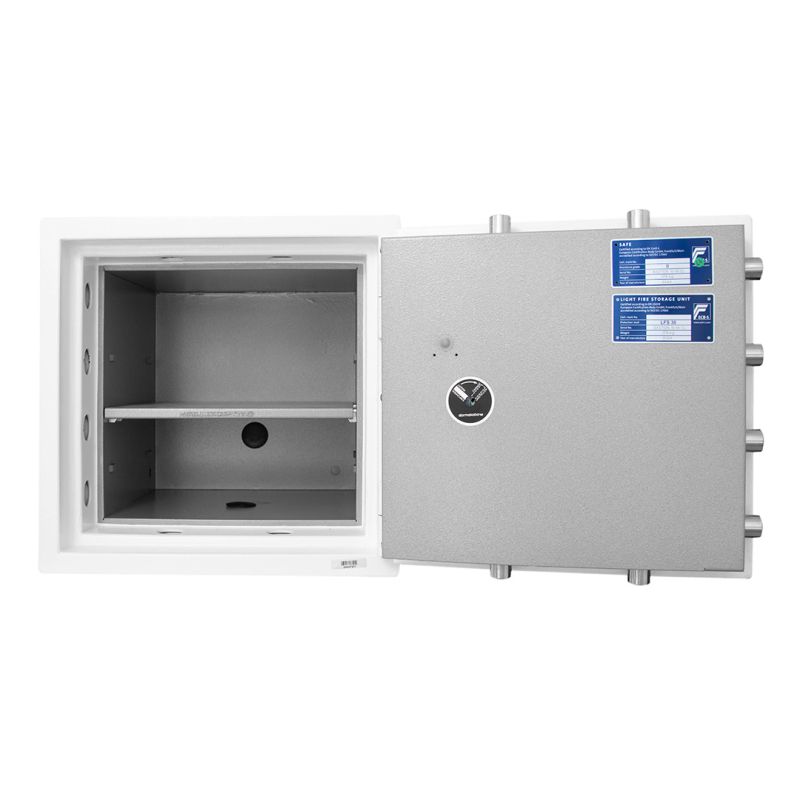Сейфът гарантира максимална сигурност и защита за съхранение на документи и ценности от взлом, благодарение на сертифицирана взломоустойчивост по европейски стандарт EN 1143-1 клас 2, изключителна здравина и усилена конструкция с двоен корпус и специална защита против рязане и разбиване. Интегрираните скрити Relocker механизми осигуряват допълнителна защита при опит за взлом, а масивната подсилена конструкция увеличава устойчивостта и стабилността. Тристранното заключване гарантира надеждна защита, а механичният кодов комбинатор La Gard със сменяем код клас B по EN 1300 предлага високо ниво на сигурност и контрол на достъпа. Скрити точки за фиксиране към основа осигуряват допълнителна стабилност и защита против изнасяне. Външното прахово полимерно покритие в бял цвят бял RAL 9003 придава модерна и професионална визия, а вътрешното покритие в сив цвят сив RAL 3006 осигурява дълготрайна защита и устойчивост на износване. Масивните заключващи болтове и практичният вътрешен рафт допринасят за сигурно, организирано и надеждно съхранение. Гаранция – 2 години.