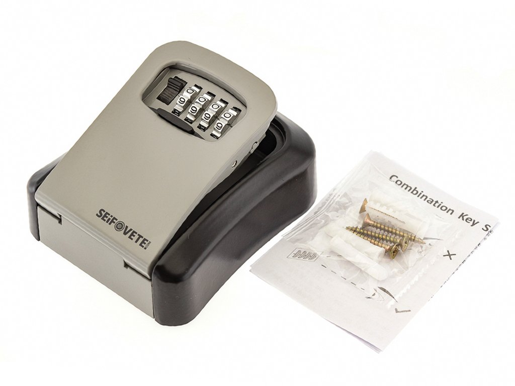 Побира ключове с дължина до 10см. Кодът е 4-цифрен и се задава от ползвателя. Изработена е от метал и пластмаса, има защитно капаче срещу прах. Корпусът и вратичката са подсилени.Удобно се монтира до вратата на офис, апартамент или помещение, което се отдава под наем краткосрочно. Посетителите получават и връщат ключовете без да е необходима лична среща с наемодателя.Размери в см: В=11,5/Ш=9,5/Д=4см
