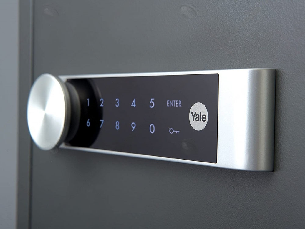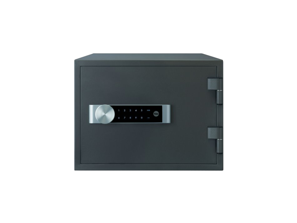 Характеристики: модел YFM/352/FG2/B- размер М (среден) пожароустойчивост до 60 мин за документи дигитална брава, която реагира при докосване за въвеждане на код 3-12 цифров код висока защитеност с над 1 млн цифрови комбинации опция за програмиране на временен код за гостуващи потребители пасивни шипове откъм пантите корпус от стомана, допълнително обработен с епоксидно покритие, за защита от ръждясване сертифициран съгласно Шведски и Корейски стандарти елегантна ръкохватка кукички за ключове от вътрешната страна на вратата 2 отвора за закрепване към под тайно въвеждане на код, чрез натискане на произволни цифри преди или след истинския код безшумно въвеждане на кода В случай че се въведе грешен код, бравата се заключва за 3 мин (времето се избира от ползвателя). Освен това има опция за забрана за активиране на клавиатурата и отключване на сейфа между 1 и 48 часа. Продуктът съдържа: сейф 4 батерии инструкция опаковка