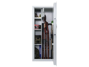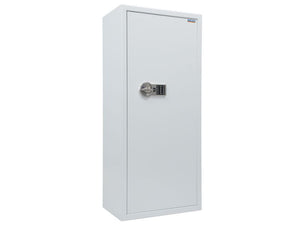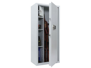 Оръжеен сейф за 6 броя оръжия с тристранно заключване за максимална защита срещу неоторизиран достъп. Електронна брава PS 310 клас А, гарантираща висока степен на сигурност и отговаряща на европейските стандарти. Вратата и корпуса на сейфа са изработени от здрава стомана с дебелина 2.8 мм. Разполага с вътрешно касово отделение за боеприпаси и ценности, както и фабрични отвори за монтаж към пода и стената за максимална сигурност и стабилност.Този сейф е проектиран за надеждно съхранение на огнестрелни оръжия и предлага високо ниво на защита срещу опит за взлом. Здравата стоманена конструкция и електронната брава по европейски стандарт гарантират сигурност и удобство при ежедневна употреба. Вътрешното касово отделение е с размери ВхШхД – 239х200х250 мм и предоставя отделно защитено място за боеприпаси и други важни принадлежности, докато предвидените фабрични отвори позволяват лесен и стабилен монтаж към под или стена, което прави демонтирането му изключително трудно.Гаранция -2 години.Сейфът се предлага по заявка, след пълно предплащане.