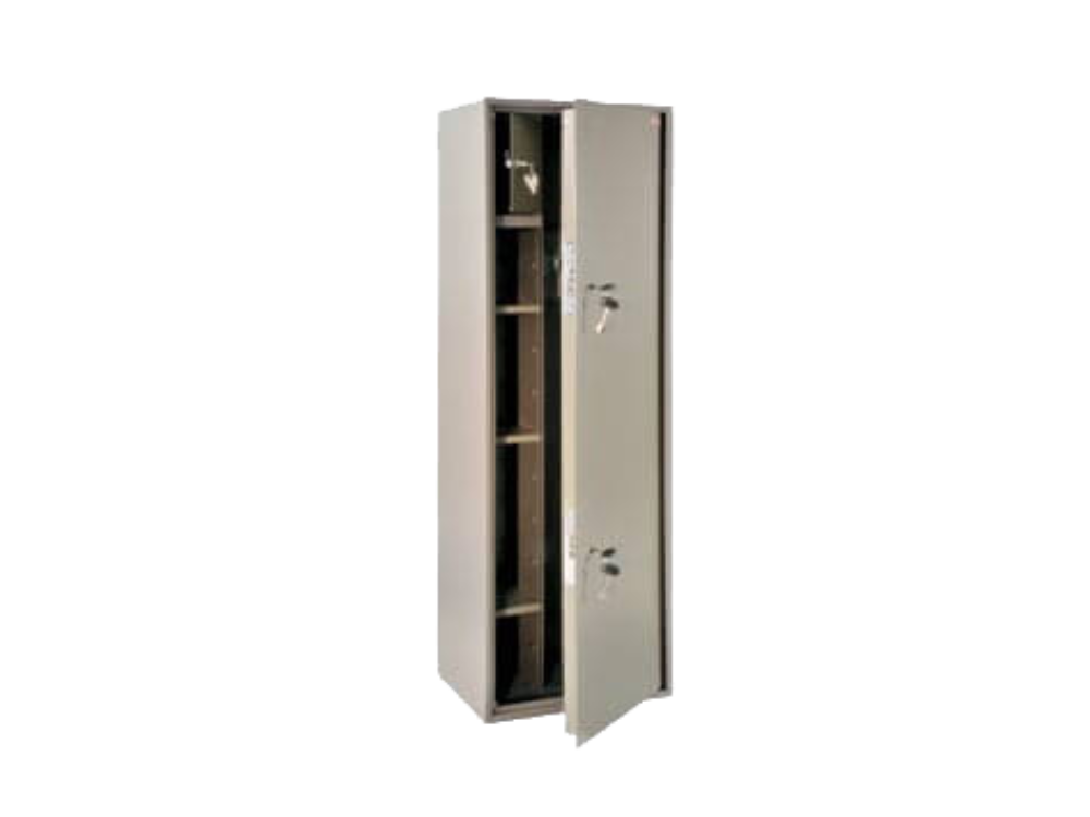Оборудван с вътрешно касово отделение, предназначен за съхранение на до 2 бр дългоцевно оръжие /пушки/, устойчивост на взлом - ГОСТ Р 50862-2005.