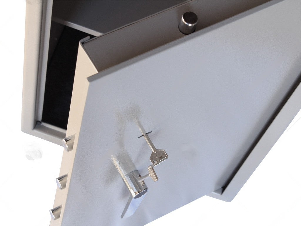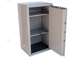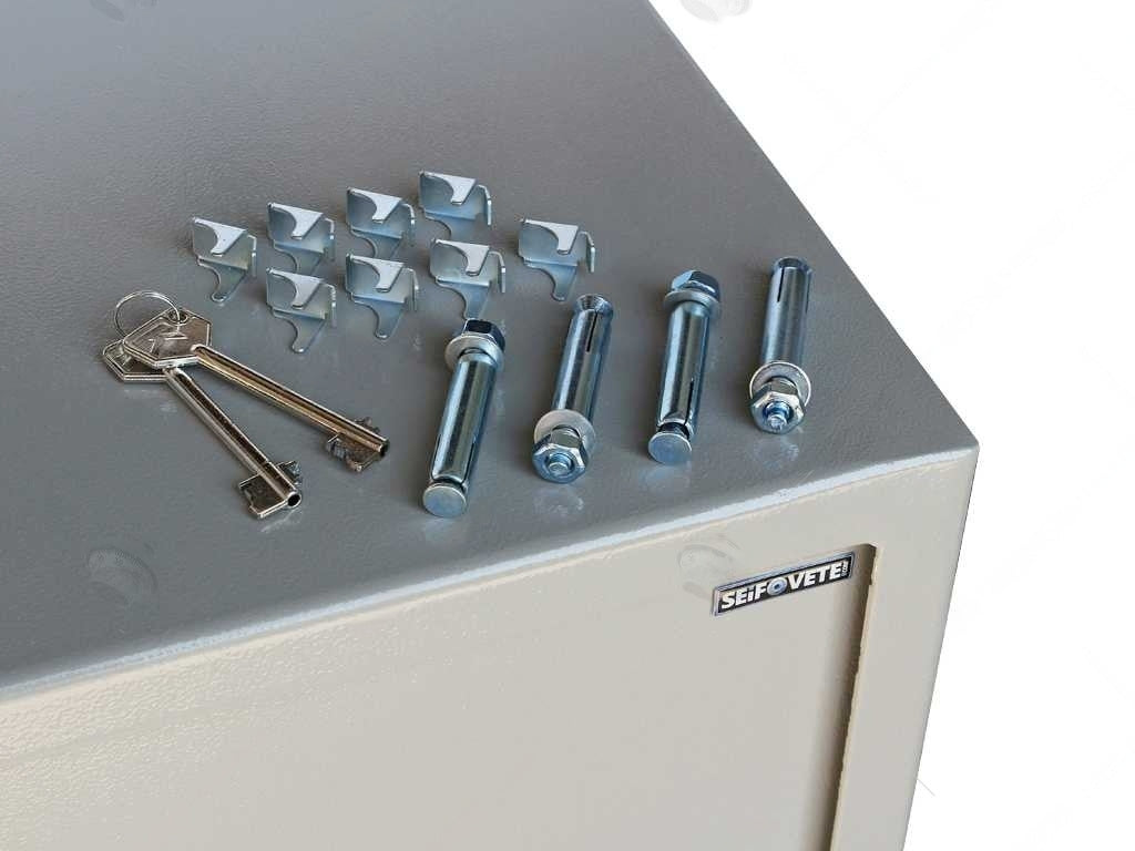 Касовата брава задейства 5-шипов механизъм за заключване на вратата. На вратата е монтирана и дръжка, за безпроблемно отваряне и затваряне. Снабден е с 2 вътрешни рафта, които могат да бъдат монтирани на различно ниво в сейфовата кутия. Идеален за употреба в офис сгради, банкови институции или у дома.В комплект към сейфа се предлагат четири (4) броя анкерни болтове, а на две от стените му има направени предварително отвори за монтаж към стена или под.Сейфърт се доставя на палет, като цената на доставка се уточнява според населеното място.