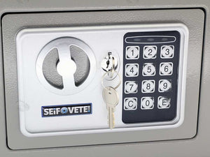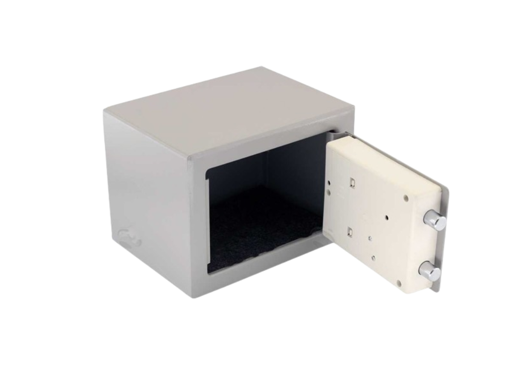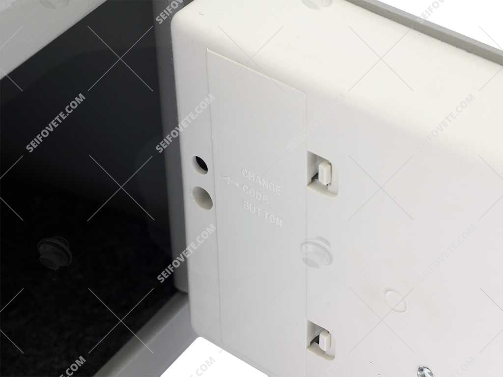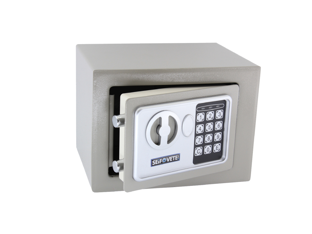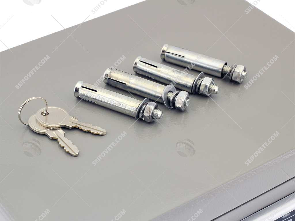 Корпусът е направен от стомана. Сейфът е проектиран така, че да се закрепя лесно към под и/или стена за допълнителна сигурност. За целта към офис сейфа се предлага монтажен комплект от закрепващи болтове.Вратата се заключва електронно - чрез въвеждане на 4-8 цифров код. От вътрешната страна на вратата има обособено място за 4бр. батерии. При забравен или въведен грешен код, може да се отвори чрез допълнителната секретна ключалка, скрита зад капаче до електронната ключалка. Към сейфа се предлагат 2 допълнителни ключа - туболарни. Сейфът е с гаранция 2 (две) години.