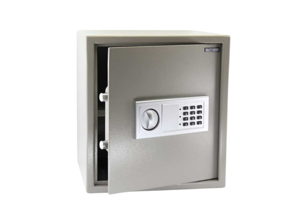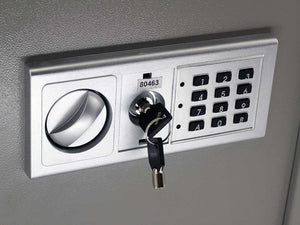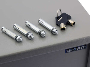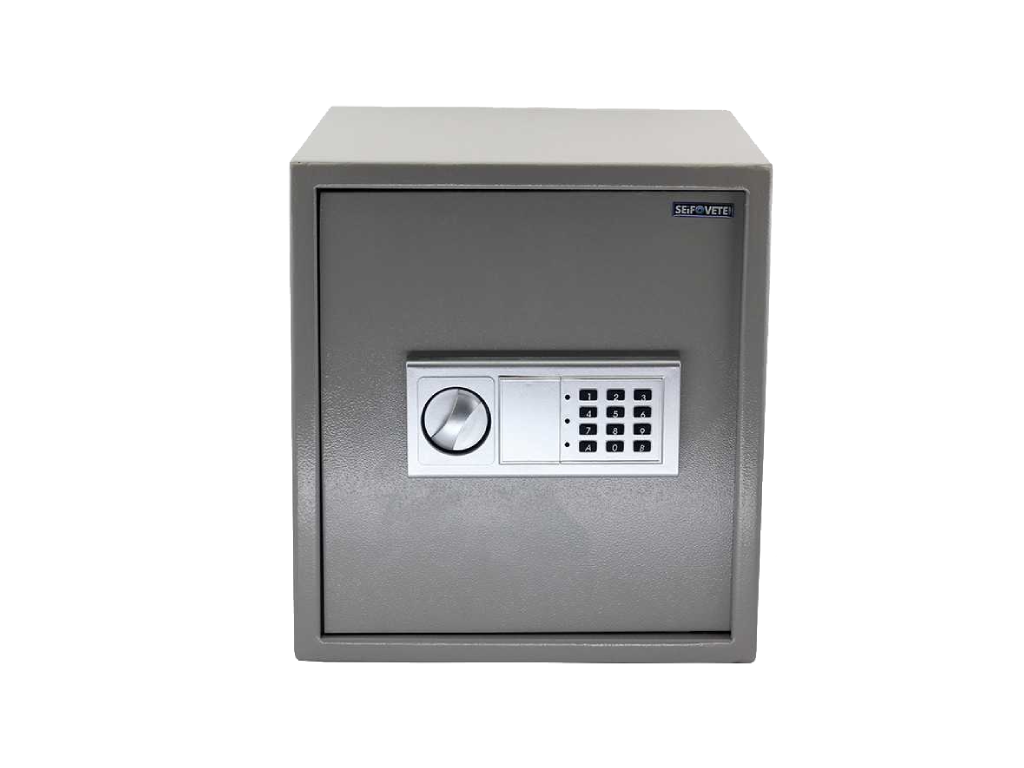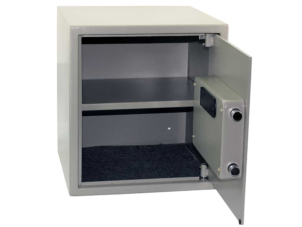 Офис сейф с електронно заключване. Подходящ както за дома, така и за офиса за съхранение на ценни книжа, валута и документи. За заключване и отключване се въвежда код чрез електронната брава, монтирана на вратата. За зануляване на код, се използва червения бутон, който се намира отвътрешната страна на вратата на сейфа. При аварийни ситуация може да се отключи чрез допълнителната тубуларна ключалка. Сейфът има отвори за закрепване в пода и в задната стена.