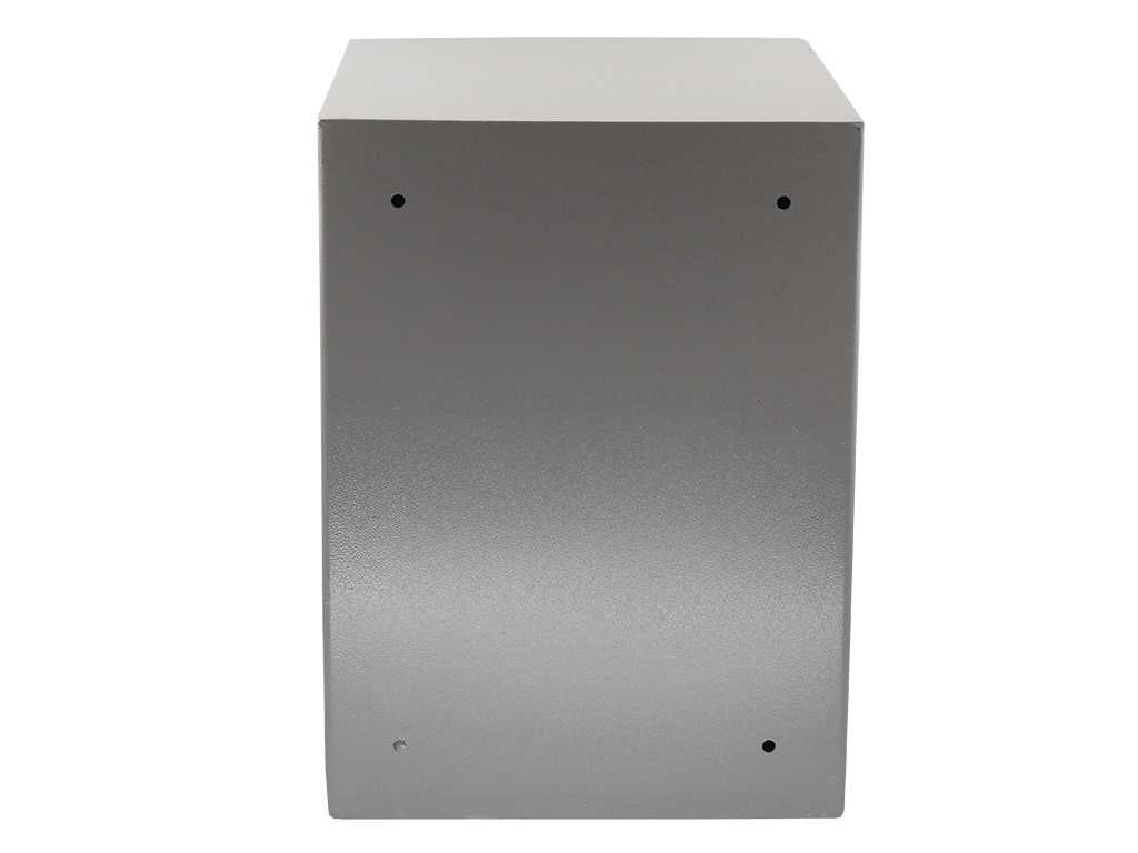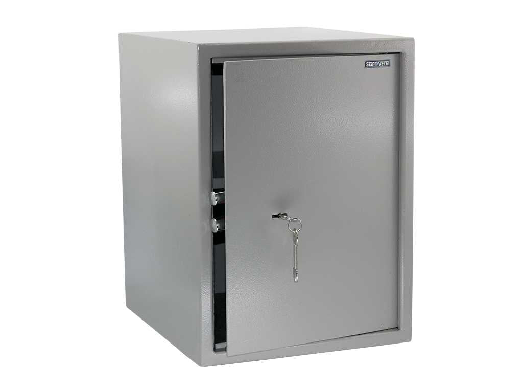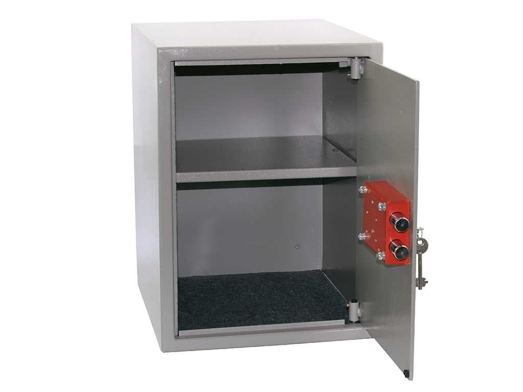 Заключването е чрез касова брава. Не осигурява висока защита защита срещу разпробиване. Има отвори за монтиране на сейфа към стена.В сейфа по желание може да се монтира един (1) брой рафт, за по-добро разпределение на вещите в него.При закупуване на сейфовата кутия към нея получавате два (2) броя ключове и четири (4) броя анкерни болтове за монтаж. Две години гаранционен срок.