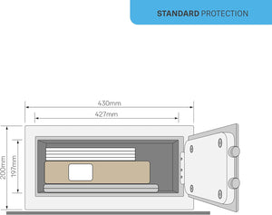 Сейф YLG/200/DB1 е подходящ за употреба от различни потребители, като при всяко отваряне и затваряне се задава код. Размерите са достатъчни за съхранение на лаптоп, документи и други вещи. Сейфът е снабден с дисплей, програмируем код 3-8 цифри, мастър код и ключове за аварийно отваряне. Функция тихо и тайно въвеждане на код, а отделението за батериите е отвън за удобство. Предлага се само в черен цвят. Снабден с отвори за закрепване към стена и под.