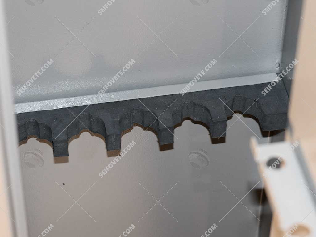 Сейф за неразглобено дългоцевно ловно оръжие с възможност за съхранение на до 5 бр. Снабден е с допълнителна вътрешна касета за съхранение на боеприпаси. Сейфът се доставя на палет, до входа на адреса.