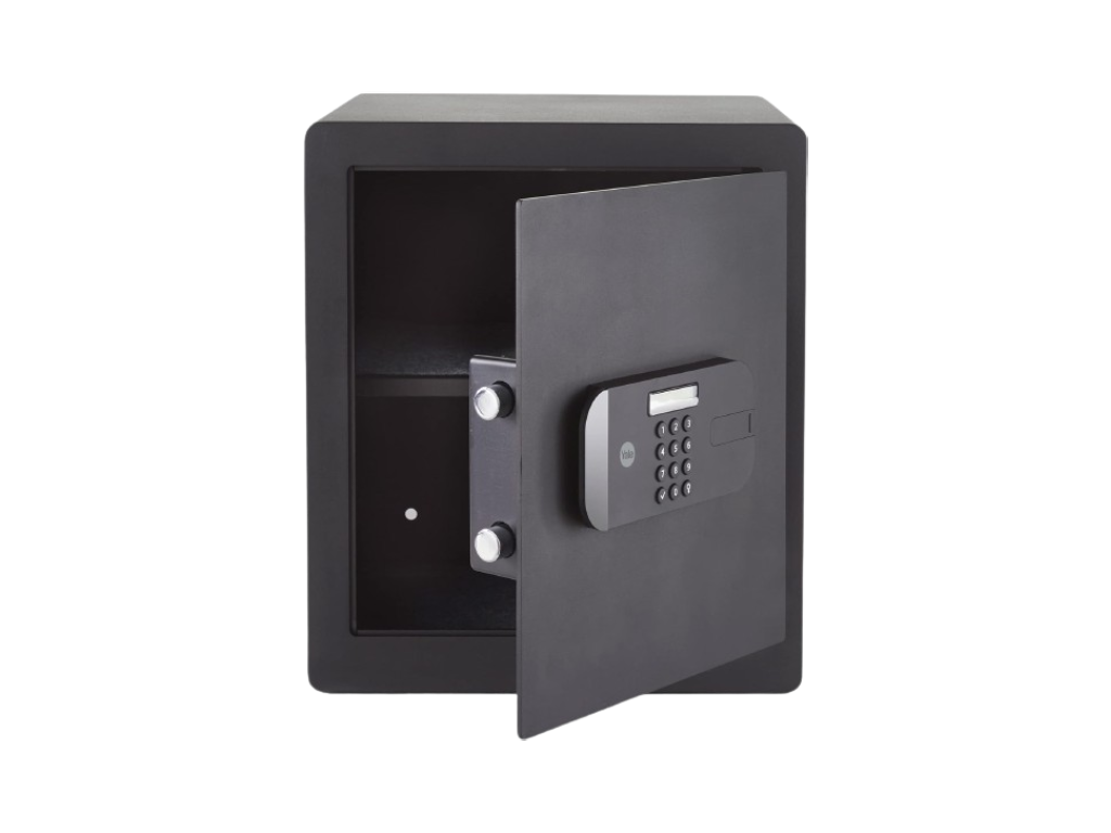 Лазено отрязана врата. Бронирани стоманени пластини за защита от разпробиване на заключващия механизъм; Вътрешна тапицерия; Вътрешно осветление; Вътрешен рафт; Дигитална клавиатура и син LCD дисплей; Сигнализация за слаба батерия; Брава - 6 совалкова, аварийно отваряне се извършва касов ключ; Възможност за подаване на ток чрез външна батерия - 9V; Шипове с дебелина 20мм, задвижвани електронно; Кодът се задава от потребителя - 4-8 цифри, сменяем; Отвори за монтаж към под и стена.