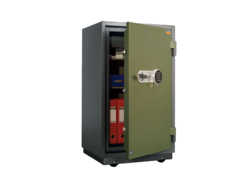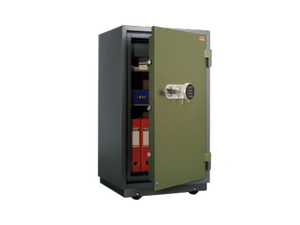 Висoкокaчествен сейф, проектиран да издържи на пожар, с температура 1000 градуса Целзий/60 мин. Клас LFS 60P / ЕN 15659 от ECBS Германия. Корпуса и вратата са двустенни с пълнеж от огнеупорен бетонСейфът се заключва тристранно с електронна брава плюс ключ. Има прахово полимерно покритие, а също така две (2) години гаранция.Доставя след предплащане по банков път. Цената за доставка се уточнява според населеното място.