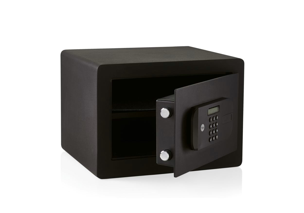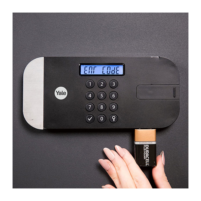 Електронният сейф с максимална сигурност Yale YSЕM/250/EG1 е подходящ за съхранение на ценности, документи и оръжие за дома или офиса. Заключването се извършва посредством лесна за управление електронна клавиатура. Ако забравите кода или батериите се изтощят, може да използвате авариен ключ. Характеристики:* Подсилен с плоча срещу пробиване* Лазерно изрязана врата за защита срещу използване на инструменти за отваряне на сейфа * Моторизиран заключващ механизъм с два шипа против разрязване (20 мм)* Заключване за 1 минута след 3 грешни опита* LCD клавиатурата показва ПИН код* Вътрешно осветление за осигуряване на добра видимост* Вътрешни кукички и рафт* Може да се използва 9V батерия, за авариен достъп * Възможност за монтаж на под/стена