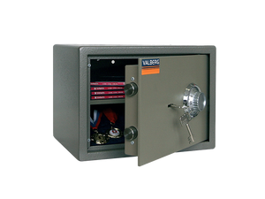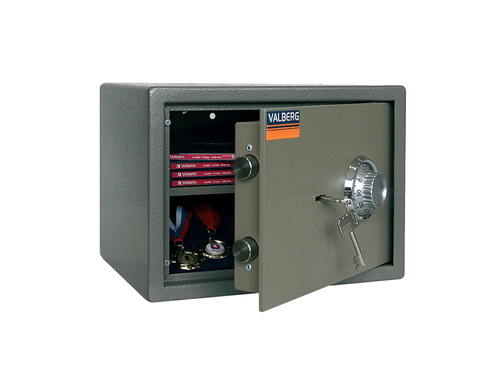 Заключването се осъществява чрез сейфова брава MAUER + допълнително кодово механично устройство с постоянен код. В сейфовата кутия може да се монтира етажерка по желание за по-добро разпределение на съдържанието в него. Има фабрични отвори за монтиране към под и/или стена.