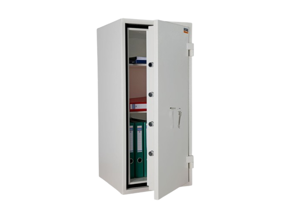Сейфът гарантира съхранението на документи и ценности от взлом и пожар. Сертифициран е по европейски стандарти: Огнеупорност: LFS 30 P EN 15659 / 30 мин. при 1000 градуса Целзий/. Устойчивост на взлом: клас S2 по EN 14450. Характеристики: Дебелина на вратата: 95 мм. Дебелина на стените: 55 мм. Двоен корпус със специална защита против рязане и разбиване. Четиристранно заключване. Вид на заключване: KL - сейфова брава “MAUER” / Германия / - клас А /по EN 1300 /. Допълнителни детайли: 2бр. Скрити точки за фиксиране към основа. Прахово полимерно покритие. Сейфът се предлага по заявка след предварително предплащане!