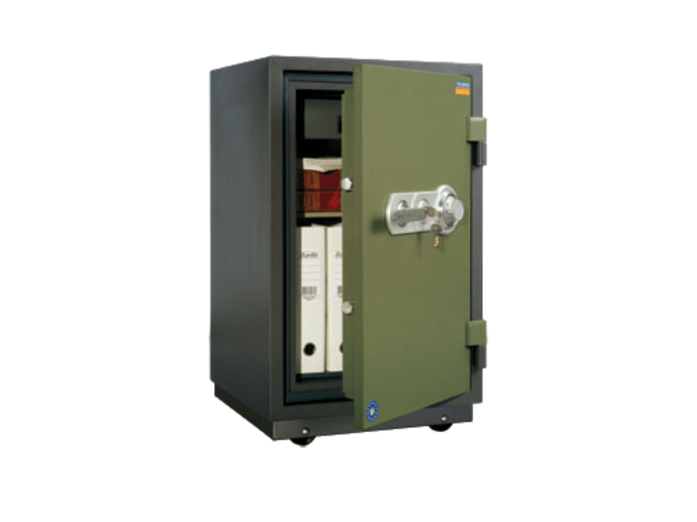 Кутията и врата на сейфа са двустенни с пълнеж от огнеупорен бетон. Този сейф е предназначен за сигурна защита на ценности и документи от пожар. Предлага се с две години гаранция.