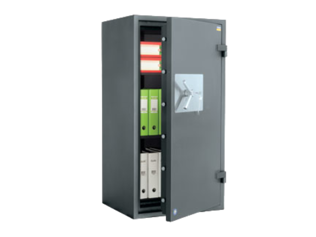 Вътрешни размери 940х407х388 мм, има фабрични отвори и може по желание да бъде фиксиран към под или стена.Сейфът е с двоен корпус , със специална защита против разбиване и рязане. Има тристранно заключване, като заключващия механизъм е посредством сейфова брава Мауер. Има възможност да бъде заменена с електронна брава, но е нужно да се консултирате с нас преди да поръчате.Сейфовата кутия Garant 110 EN е с прахово полимерно покритие. Има две (2) години гаранционен срок.