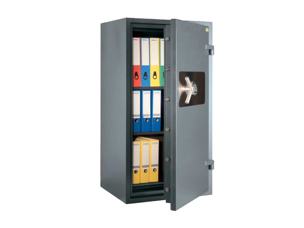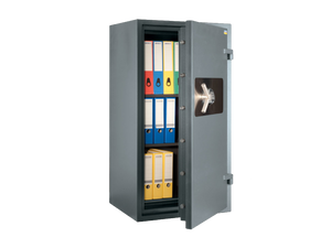 Вътрешни размери 940х407х388 мм, има фабрични отвори и може по желание да бъде фиксиран към под или стена. Има два броя рафтове към продукта.Сейфът е с двоен корпус , със специална защита против разбиване и рязане. Има тристранно заключване, като заключващия механизъм е посредством електронна брава. Сейфовата кутия Garant 110 EN ЕL е с прахово полимерно покритие. Има две (2) години гаранционен срок. По запитване.