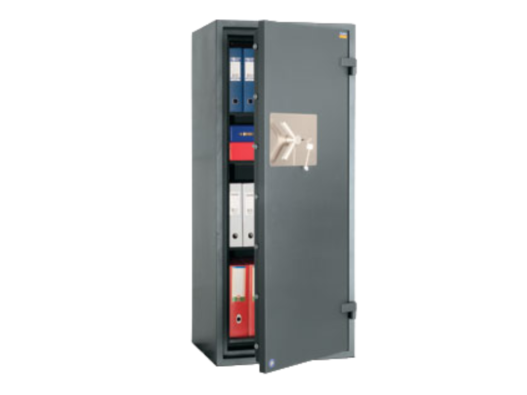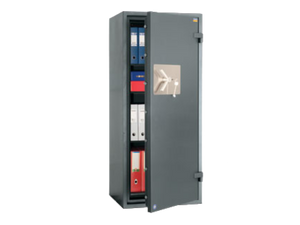 (Устойчивост на взлом : клас 1; Огнеупорност 60 мин). Дебелина на вратата 105 мм, дебелина на стените: 75 мм. Притежава европейски сертификати за сигурност.Сейфът е с напречна тристранна система за заключване с висока надеждност, като може да се зключва посредством електронна или сейфова брава с механичен кодов комбинатор. Предлага се с два рафта за по-добро разпределение на вещите в него. С прахово полимерно покритие е и има създадени фабрични отвори за фиксиране към основа. Две години гаранция.