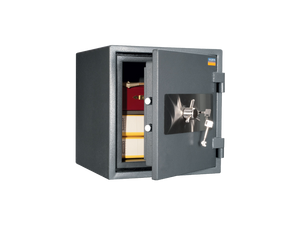 Дебелина на вратата 59 мм. Дебелина на стените: 25 мм.Сейфът е с двоен корпус със специална защита против рязане и разбиване. Тристранно заключване. Заключващият механизъм може да е посредством електронна сейфова брава или механична такава. Консултирайте се с нас преди да закупите, като се свържете с нас на посочените контакти.Има прахово полимерно покритие и фабричен отвор за монтаж към основа. При закупуване на тази сейфова кутия получавате две (2) години гаранция.