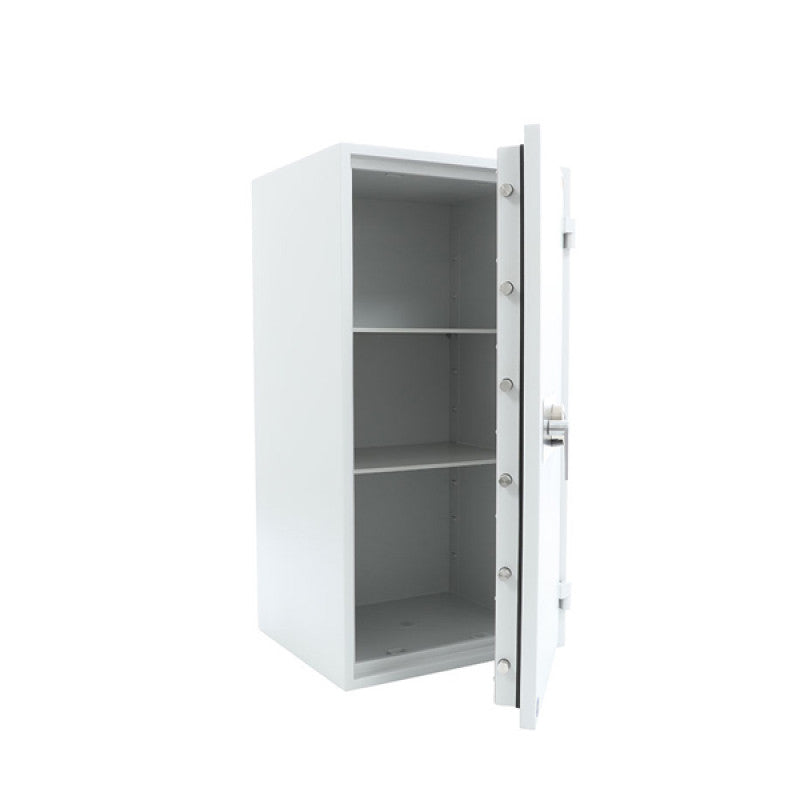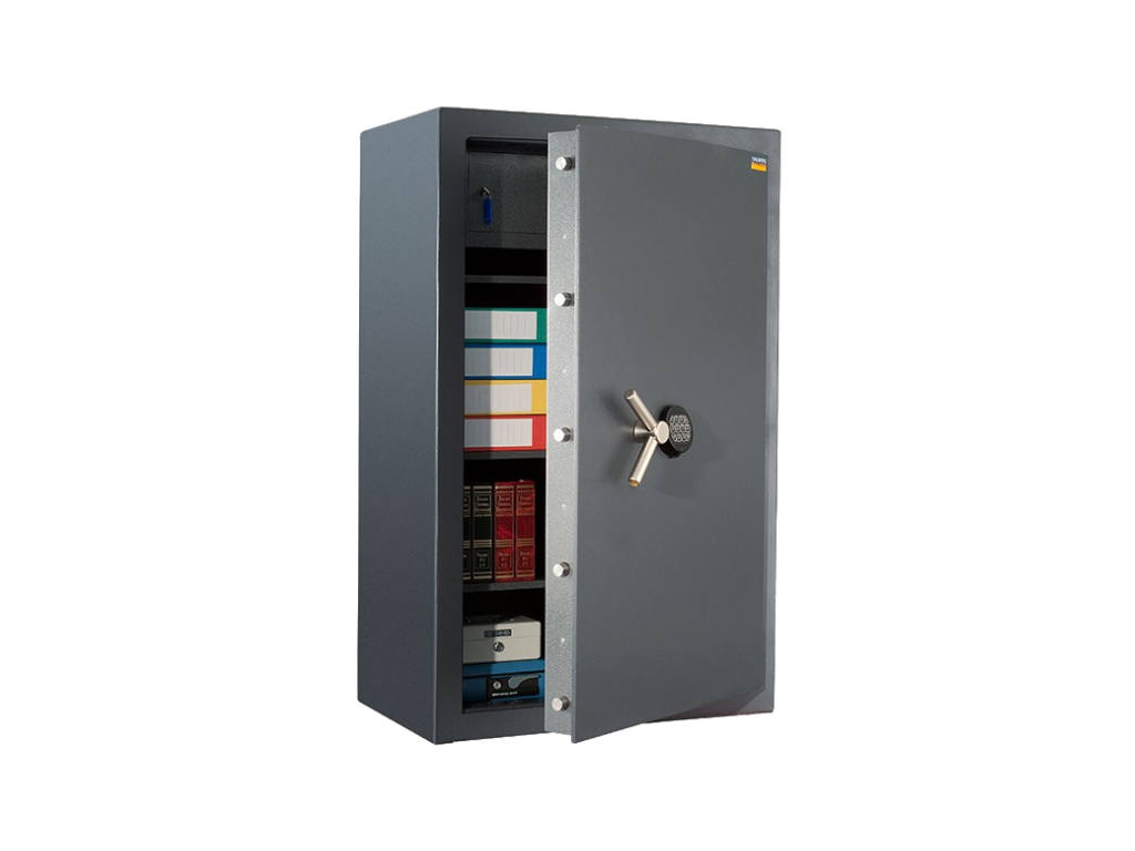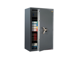 С огнеупорност LFS 30 P EN 15659 / 30 мин. и устойчивост на взлом: клас 1. Гарантира съхранението на докумени и ценности от взлом и пожар.Сейфът е с двоен корпус със специална защита против рязане и разбиване. Той е с тристранно заключване. Вариантите за заключване са със сейфова или електронна брава. Консултирайте се с нас на посочените контакти при покупка.Сейфовата кутия има скрити точки за фиксиране към основа. Тя е с прахово полимерно покритие е и две (2) години гаранция.Има възможност за монтиране на два рафта в нея. Тегло – 334кг., обем – 232 литра.
