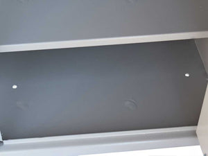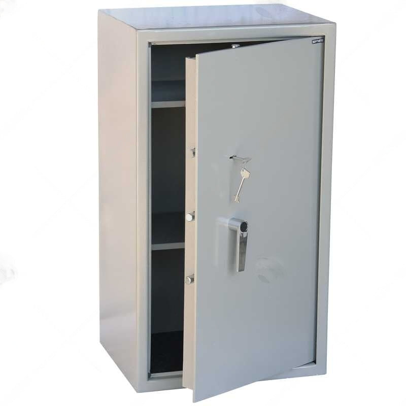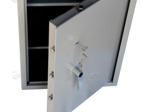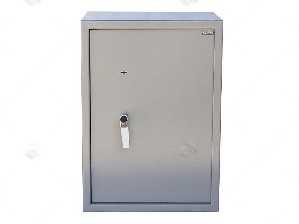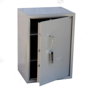 В него могат да се монтират два рафта за допълнително удобство, като при покупка на сейфа получавате осем (8) броя рафтодържачи.Вратата се отваря и затваря лесно посредством допълнително монтираната дръжка. Направени са предварително отвори на гърба и на дъното на сейфа, за безпроблемно монтиране и захващане на под или стена, чрез приложените в комплекта анкерни болтове.Сейфовата кутия се заключва с касова брава. При покупка получавате два (2) броя касови ключове.Сейфът се доставя на палет, като цената за доставка се уточнява според населеното място.