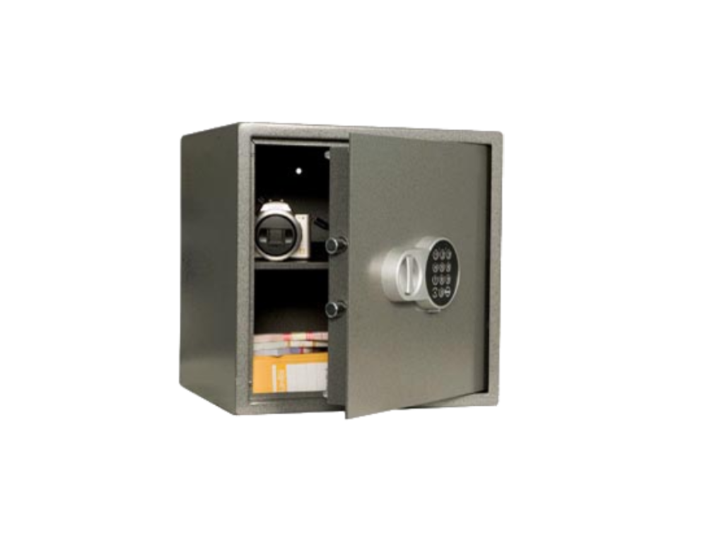 Подходящ е за употреба от постоянни потребители у дома, в офиса или хотела. Производител Promet.В сейфа може да се монтира 1бр. с рафт за удобно разделяне на вещите в него.Заключването на сейфовата кутия е с електронна брава PLS-1 Промет, като към сейфа се предлага авариен мастер ключ. Има фабрични отвори за фиксиране на сейфа към пода и стената.Сейфът е с прахово полимерно покритие.T 40 EL е сейф с електронно заключване и един рафт. Той е с тегло 19 кг и обем 47 л, което го прави идеален размер за съхранение на вашите ценности.С този сейф с електронно заключване се нуждаете само от код и няколко батерии, за да започнете да съхранявате всичко - от бижута и пари до важни документи като паспорти или актове за раждане.